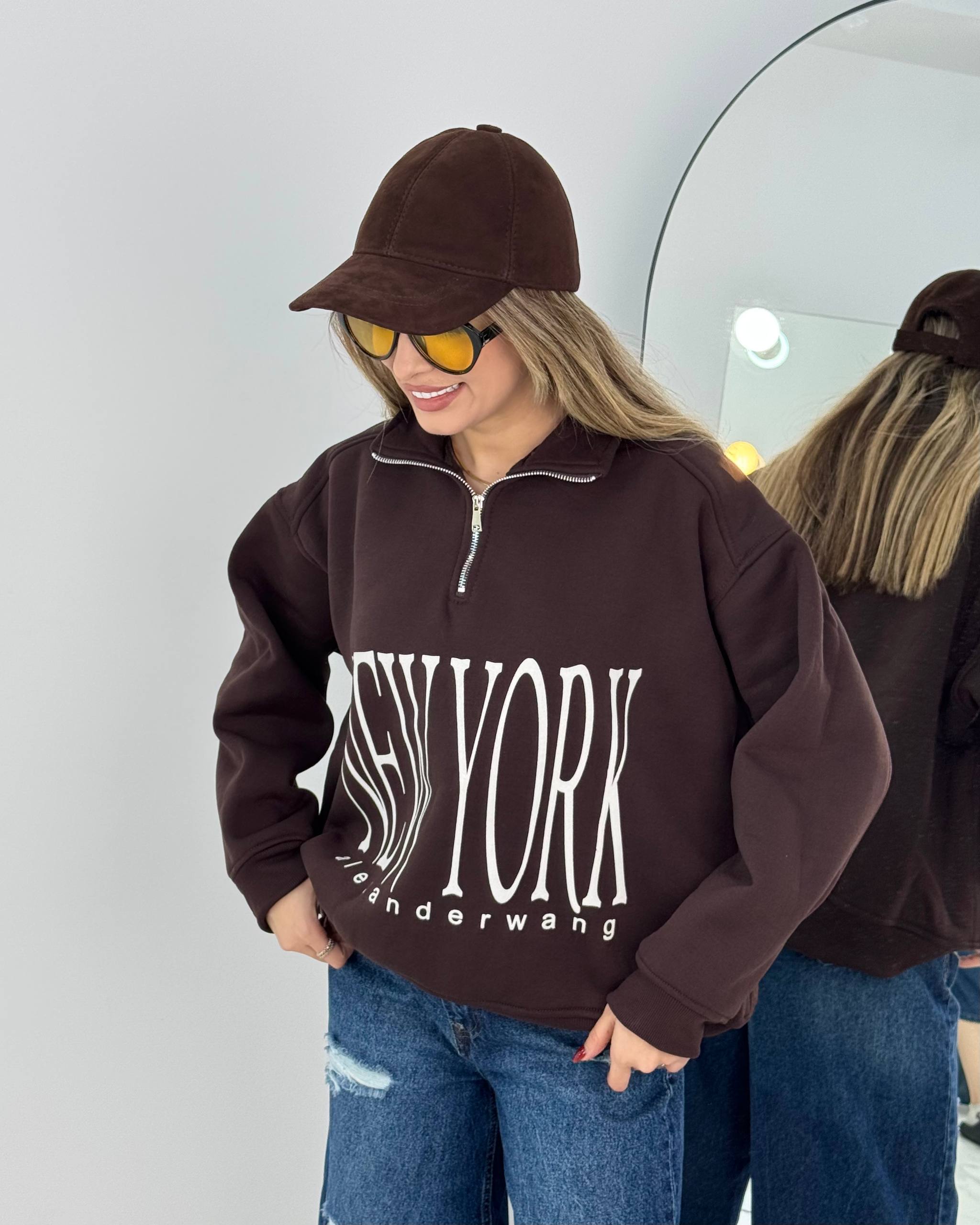 دورس نیم زیپ نوشته گلدوزی مدل نیویورک