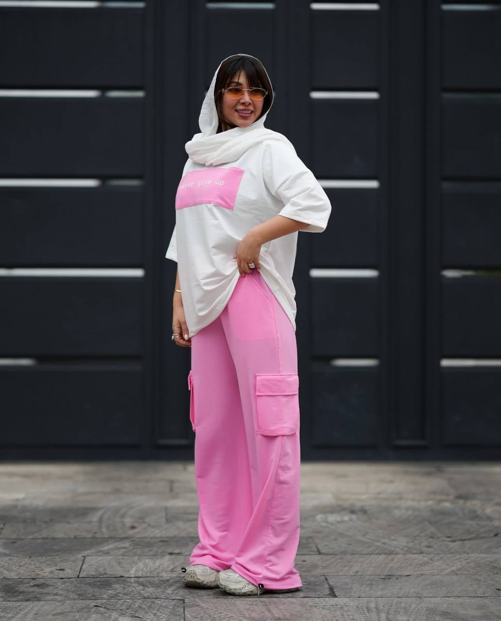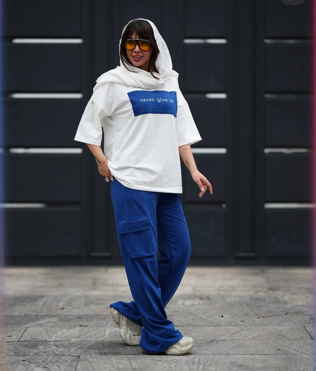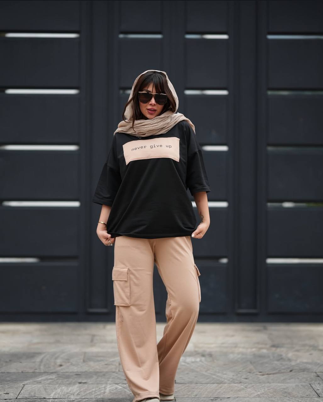ست تیشرت شلوار پنبه گلکسی مدل نور گیو اپ