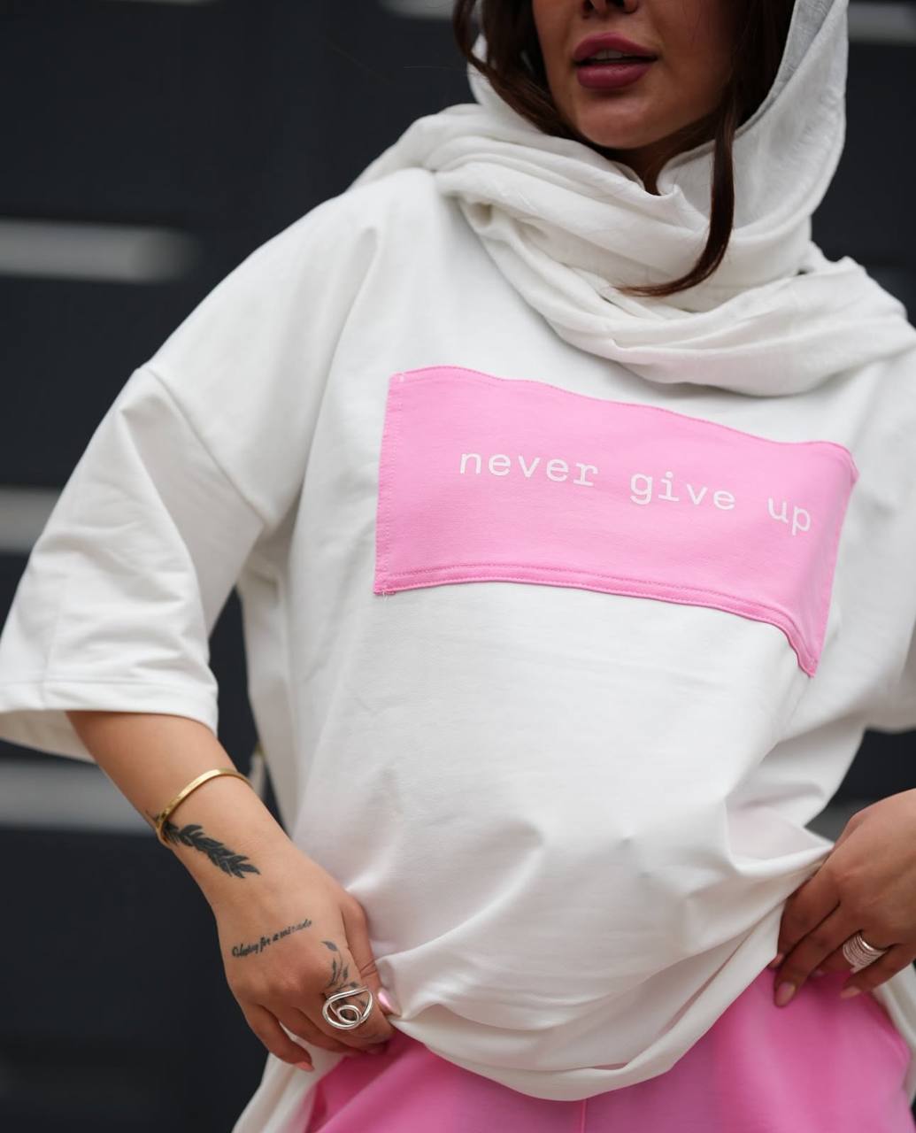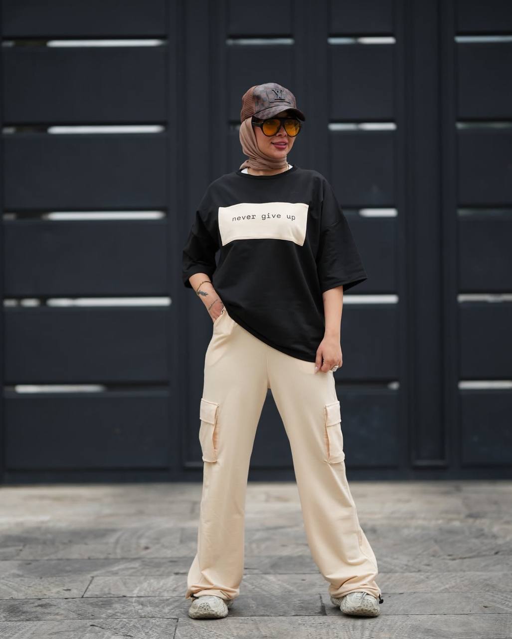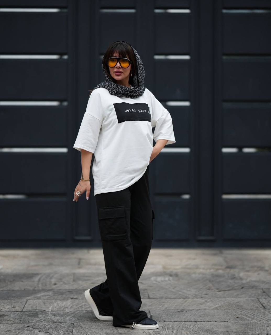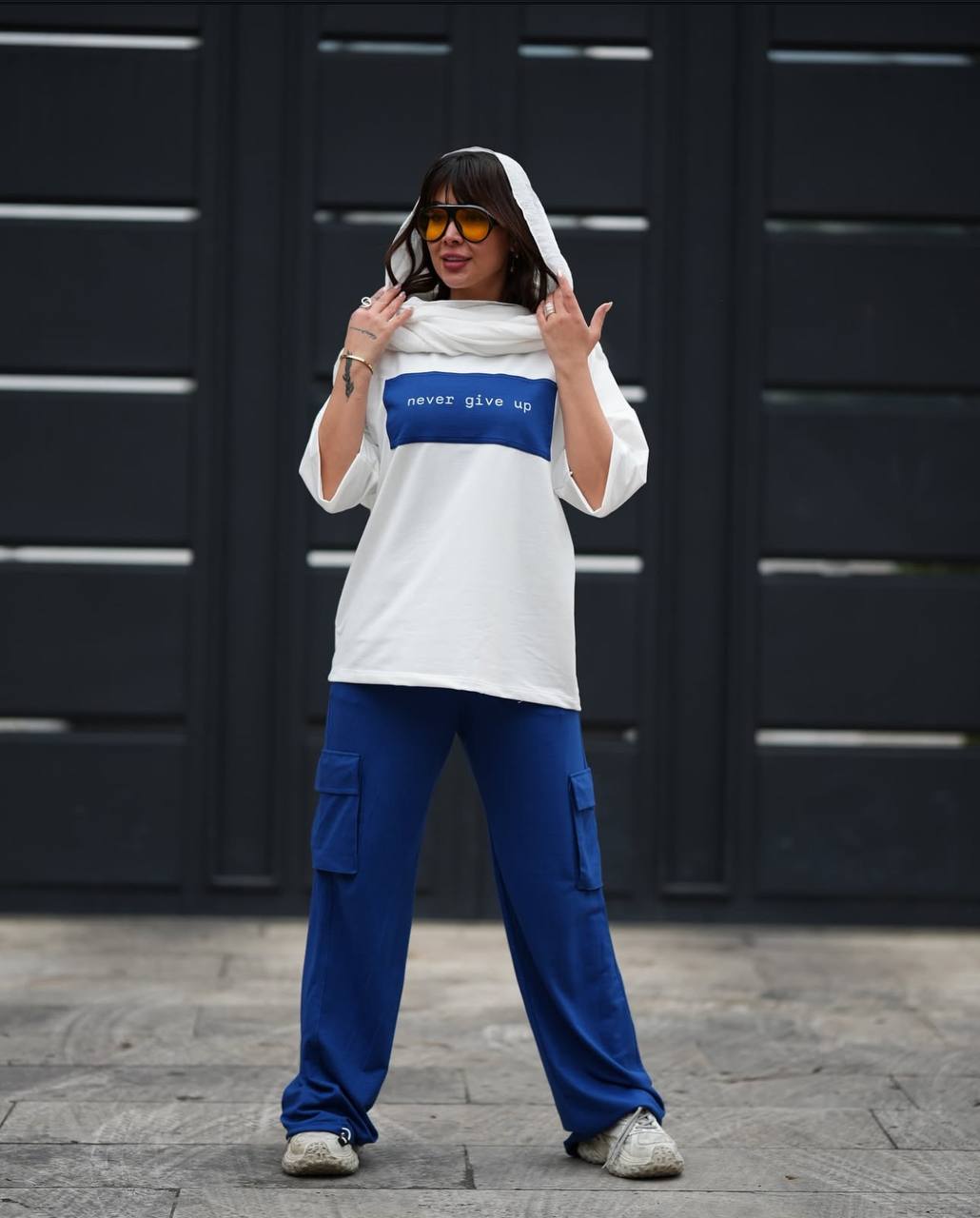 ست تیشرت شلوار پنبه گلکسی مدل نور گیو اپ