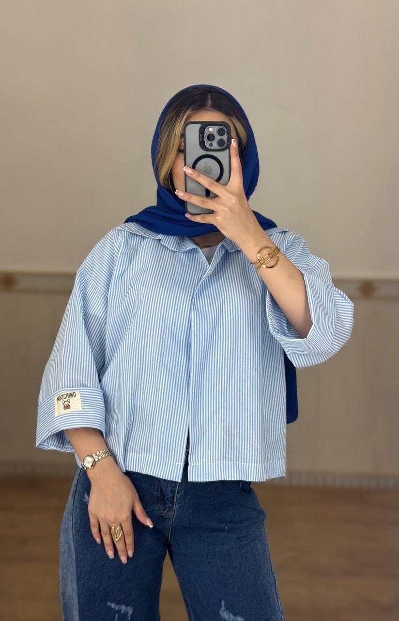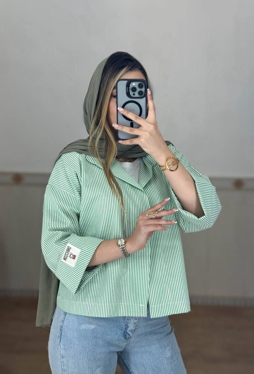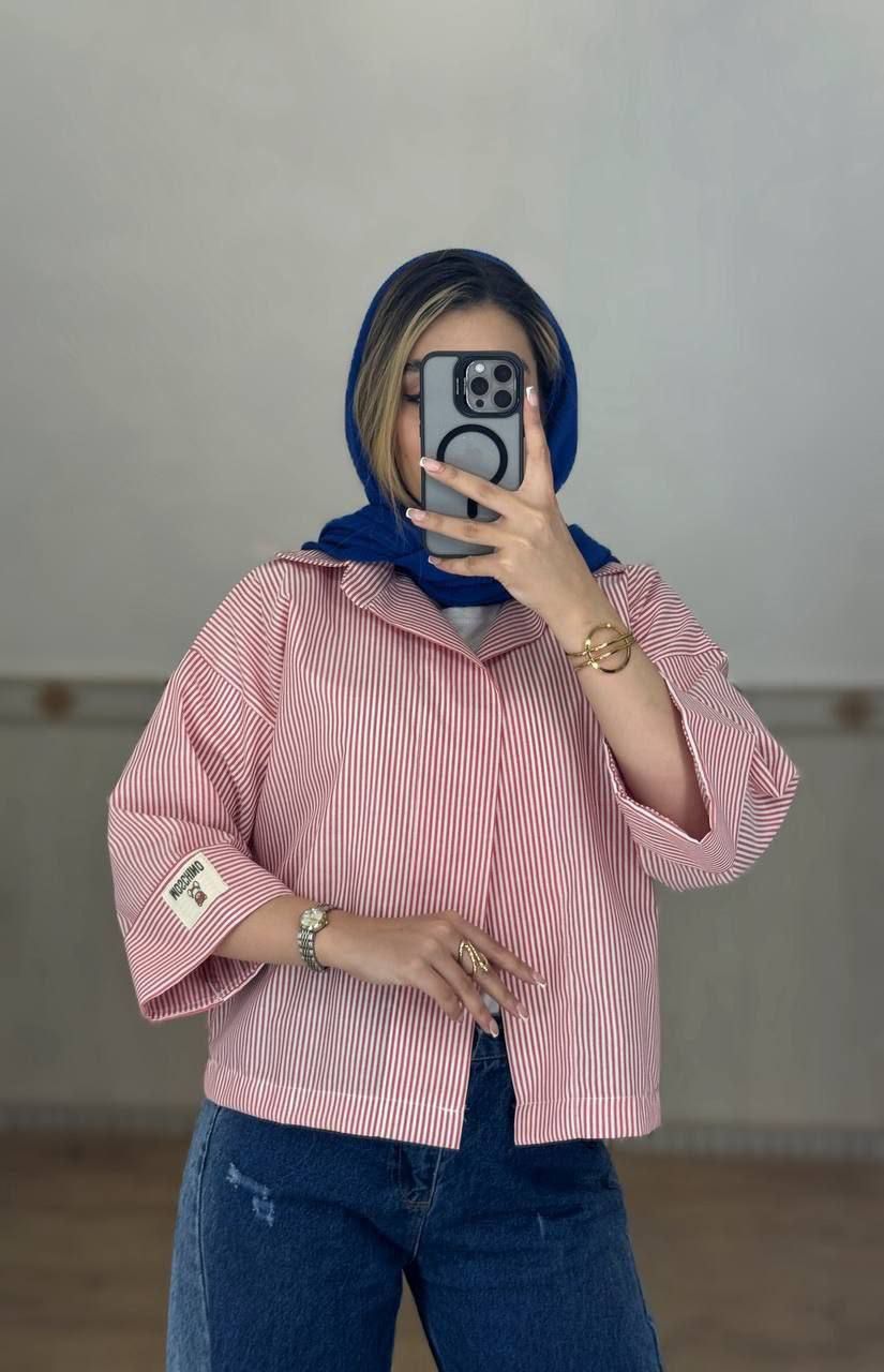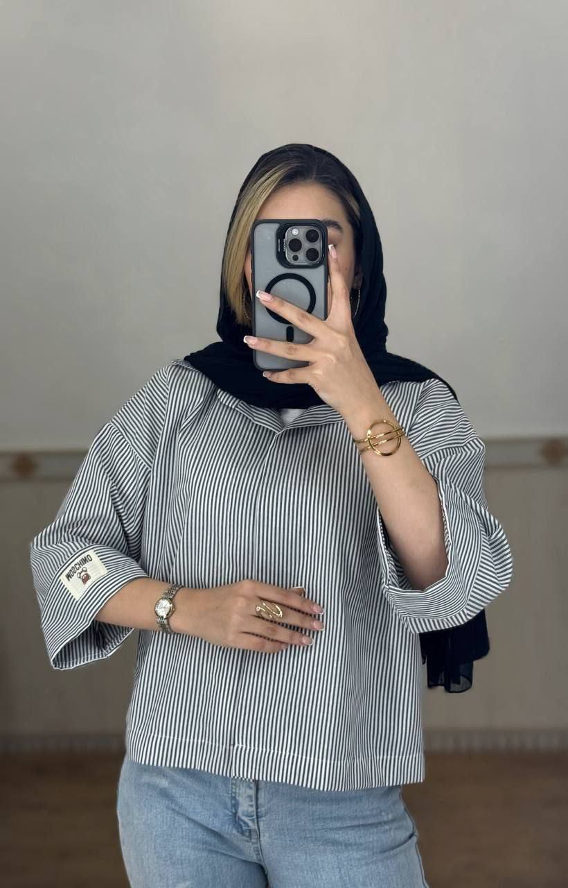 شومیز راه راه باکسی استین ۳ رب