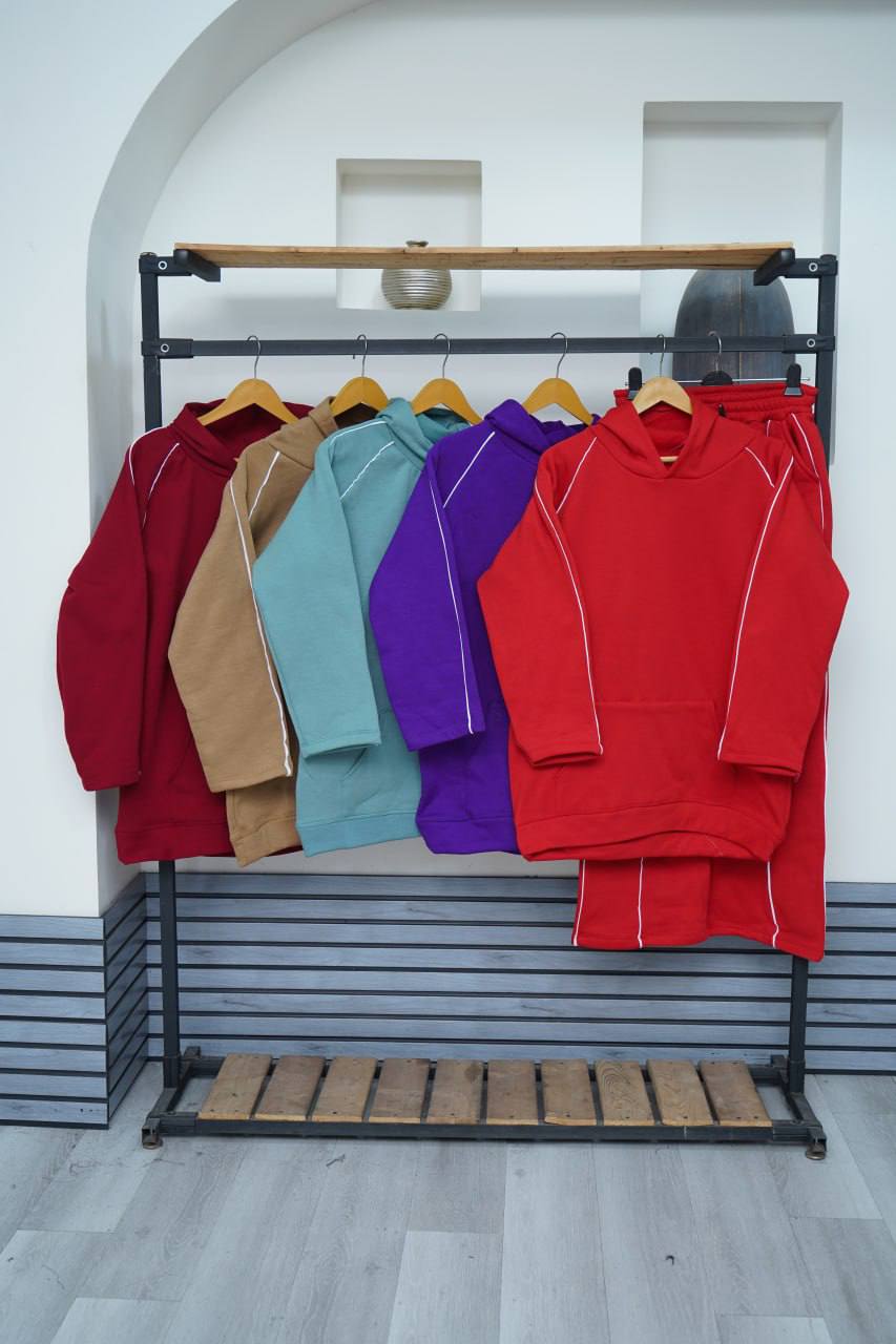 ست دو تیکه هودی شلوار مغری دوز قد هودی ۷۰ قد شلوار ۱۰۵ جنس پنبه تو کرک فری تا ۴۶ سایز تنخور عالی ضمانت پارچه