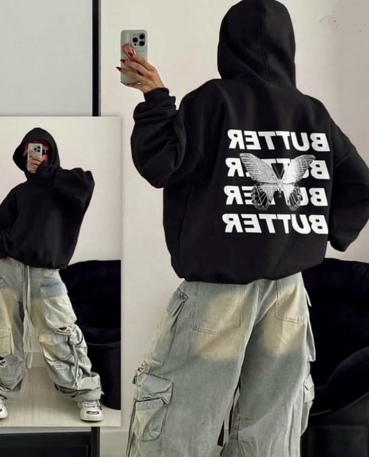 هودی پنبه تو کرک مدل پشت چاپ پروانه
